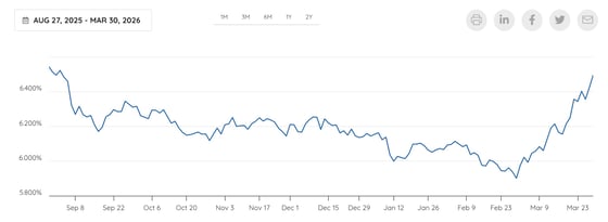 The average rate on a 30-year fixed rate conventional loan jumped to 6.494%, which is the highest we've seen rates since August 29, 2025. Check out the chart below to see just how quickly rates erased over 0.6% of reductions. See what rates we're offering by signing up for our Friday rate texts. |